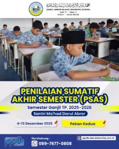 Selasa, 6 Januari 2026 Dalam rangka menyambut Semester Genap TP. 2025/2026, Ma’had Darul Abror menyelenggarakan kegiatan Rapat Akbar dengan mengusung tema: “Tumbuhkan Soliditas, Tingkatkan Solidaritas.”