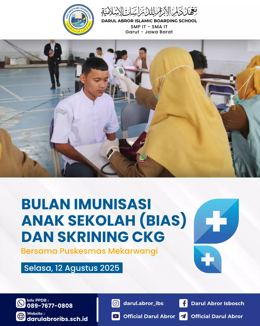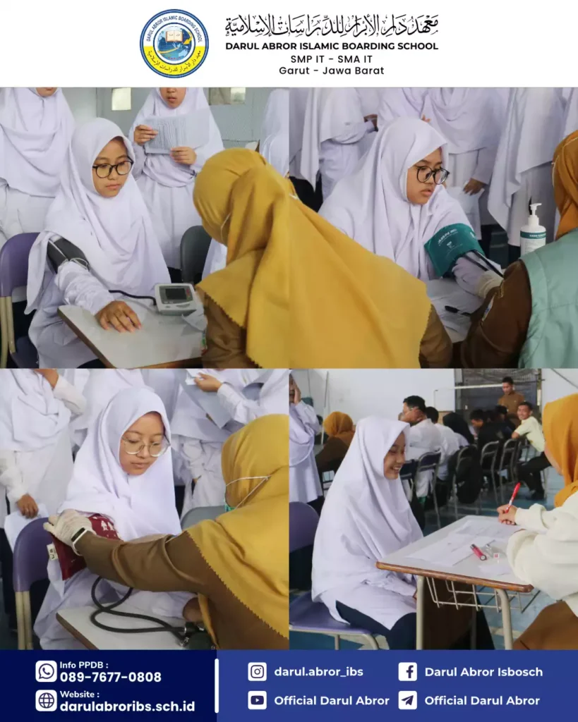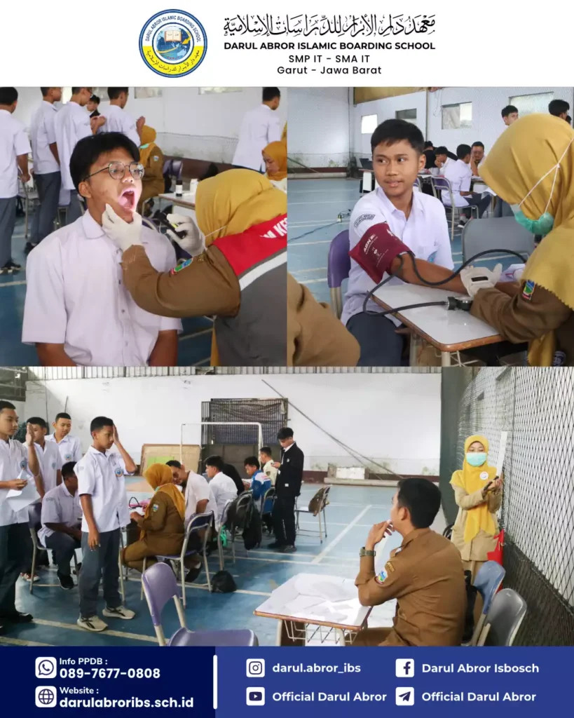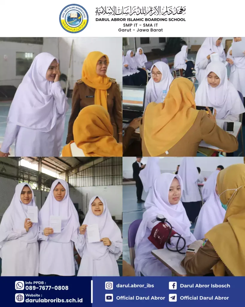 Selasa, 12 Agustus 2025 Ma’had Darul Abror bersama Puskesmas Mekar Wangi telah melaksanakan kegiatan Bulan Imunisasi Anak Sekolah (BIAS) dan Skrining CKG Tingkat SMP dan SMA untuk menjaga dan memelihara imunitas juga kesehatan seluruh santri